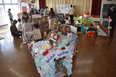 NEWS お知らせ TOP > お知らせ > 作品展(^^♪ 作品展(^^♪ 昨日、今日と2日間にわたり、作品展を開催(*^_^*) 各教室では、1年間の取り組んできた、個人の造形活動の作品を展示(^^)/ お遊戯室では、テーマパークをモチーフに各クラスの共同制作を展示しました♬ 本園の造形表現活動は、作品を作ることを目的にするのではなく、造形を通して子ども達の「やってみよう」「どうしようかな」「こうしたらどうかな」など、知的・理的・感性にはたらきかけ、育てることを大切にしています。 2026.02.22