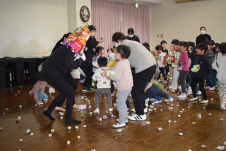 NEWS お知らせ TOP > お知らせ > 豆まき 豆まき 『オニは外、福はうち』、少し早いですが、本日は幼稚園で豆ま きを行いました。 そして、なんと、お遊戯室には、オニが(*’▽’) 園児さん達は、自分の中の弱いオニと一緒に豆を投げ、見事に退治しました(^^♪ 2026.01.30